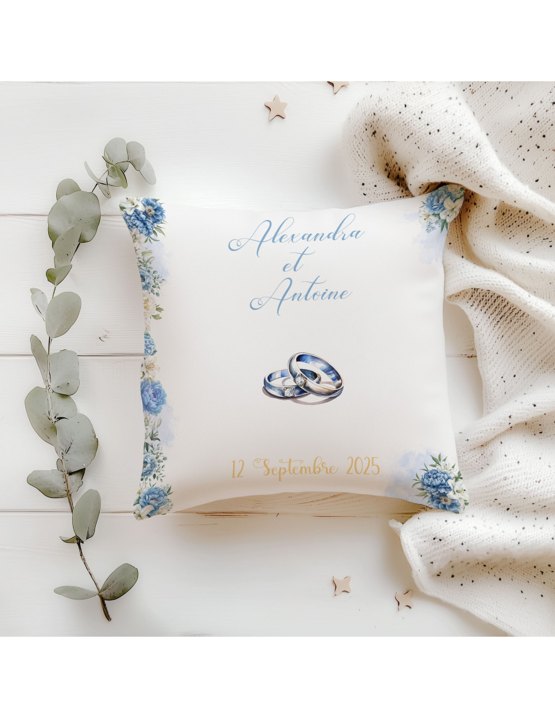 En coton . Verso uni. 2 rubans fin serons fixer pour attacher vos alliances.
