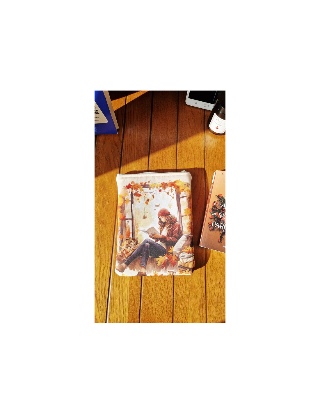 Housse liseuse ou livre Femme d'automne Pocket coton épais