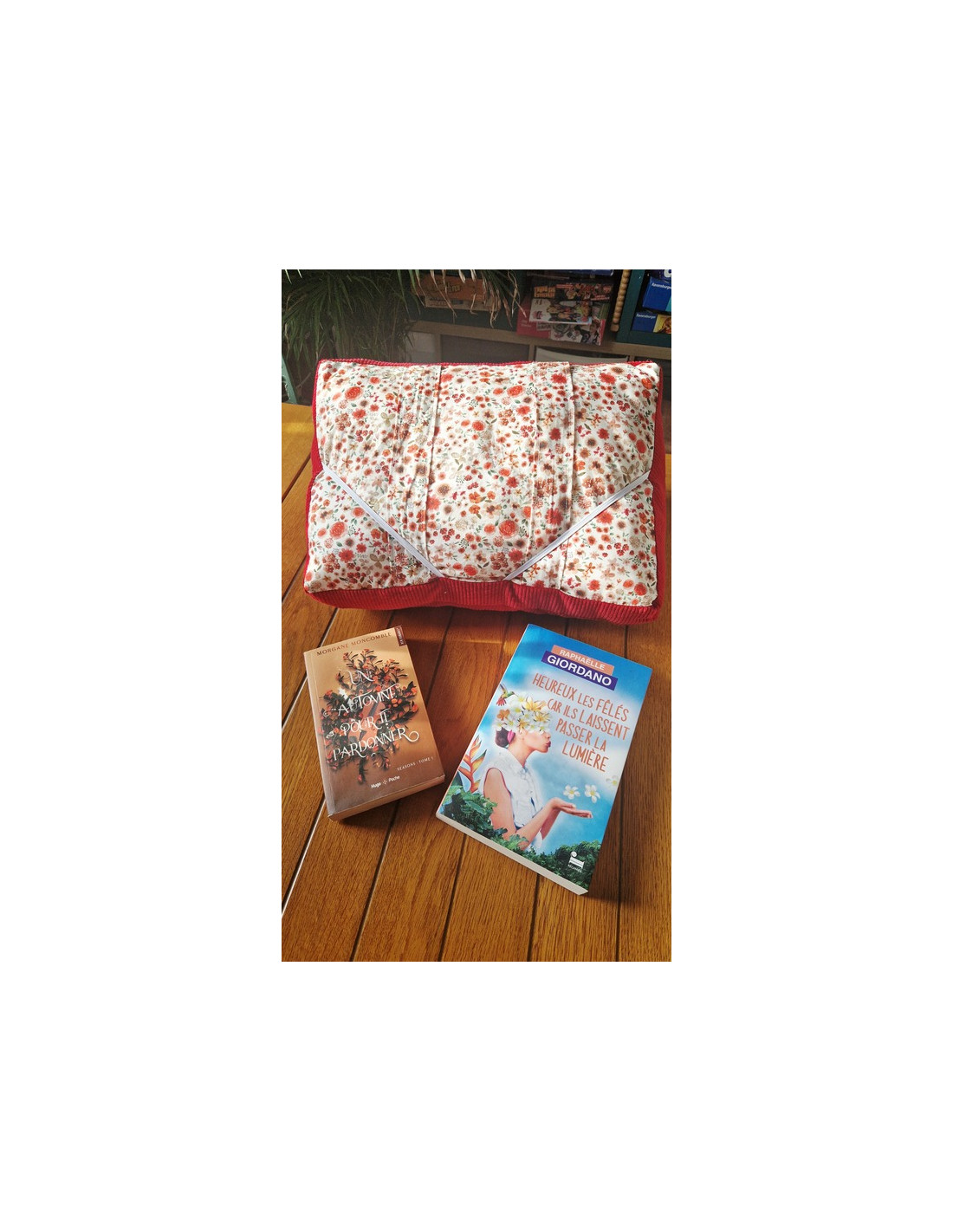 Ingénieux et pratique, ce coussin a été conçu pour accueillir vos livres brochés, formats poche ou encore votre liseuse grâce à un double système malin :