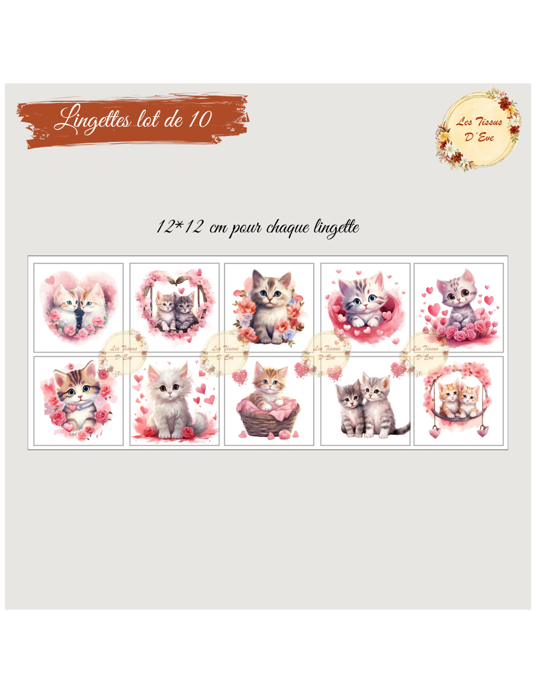 Panneau lot de 10 lingettes chatons