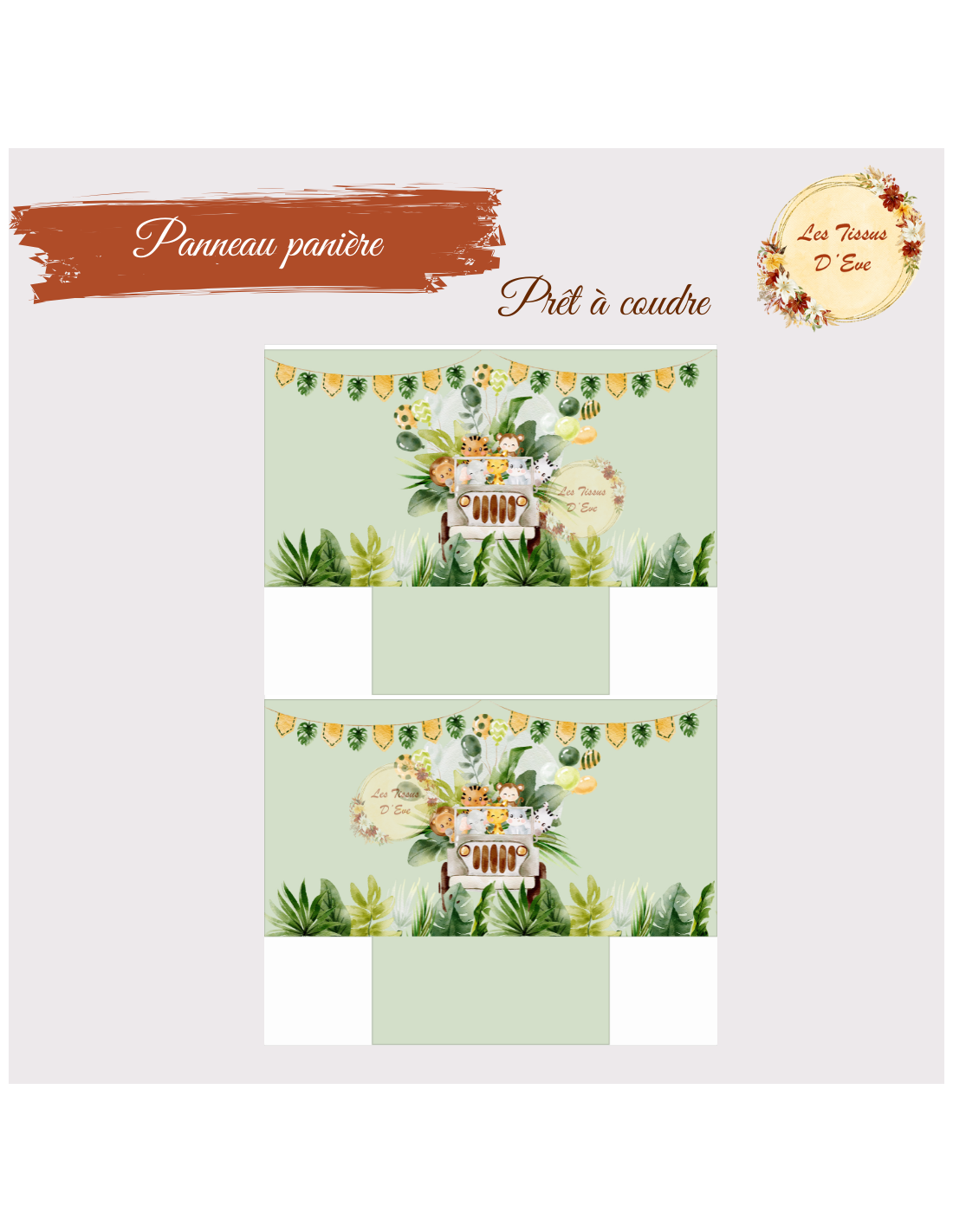 Format du panneau: 36*55cm pour une panière fini qui mesure environs 24 cm de long, 19 cm de haut et 10 cm de largeur environ. Il vous faut un autre tissu pour faire l'intérieur de votre panière.