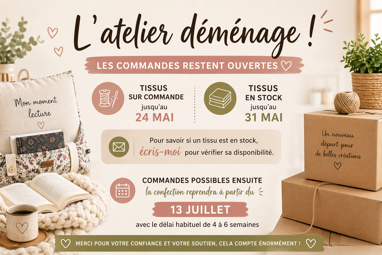 Les délais varient selon les produits. Les articles sur commande nécessitent un délai de 4 à 6 semaines. Les articles en stock un délai de 2 à 6 jours ouvrés.