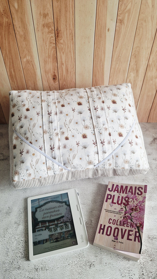 Housse livre avec marque page "fleurs bleues" -